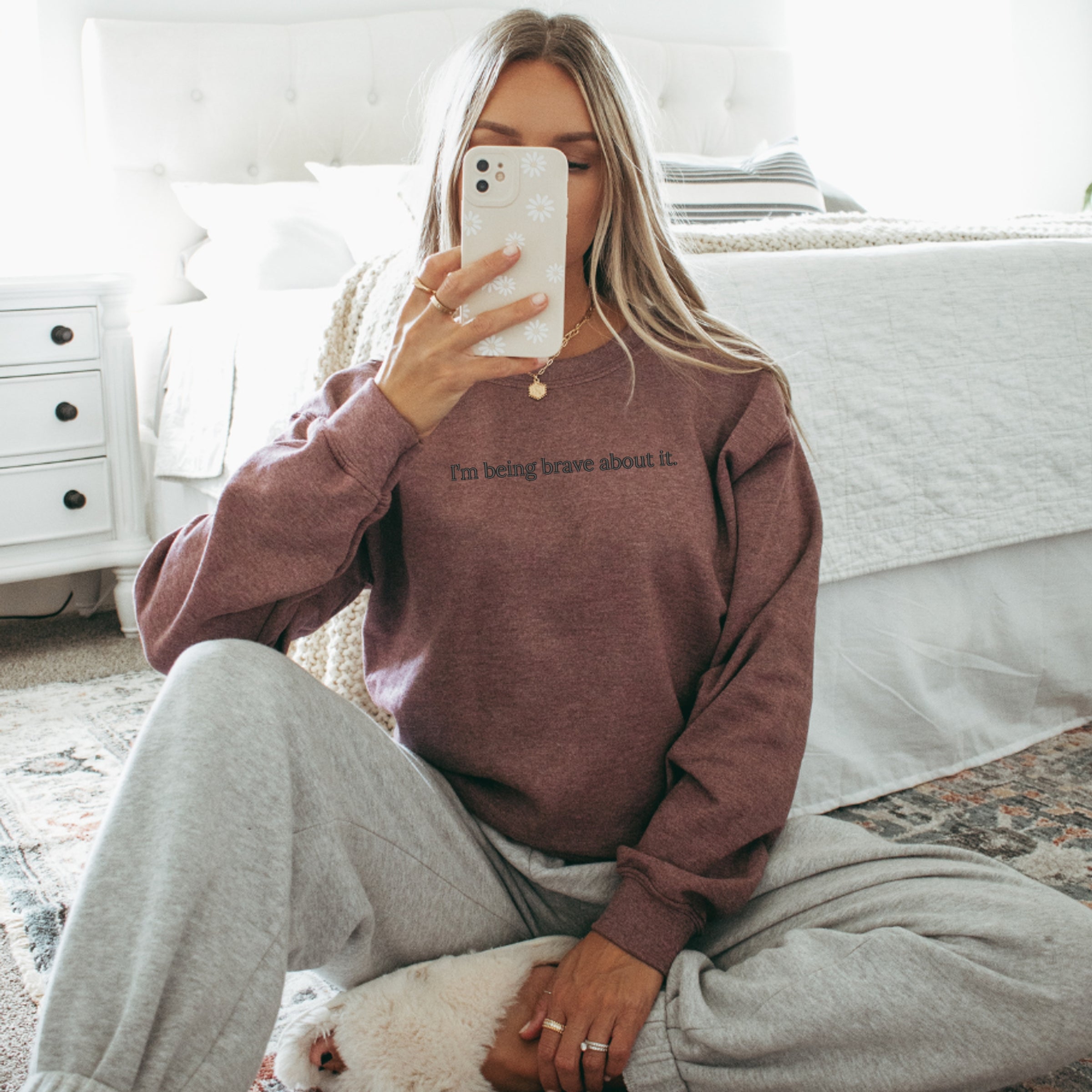 I'm Being Brave About It Embroidered - Adult Crewneck Sweatshirt